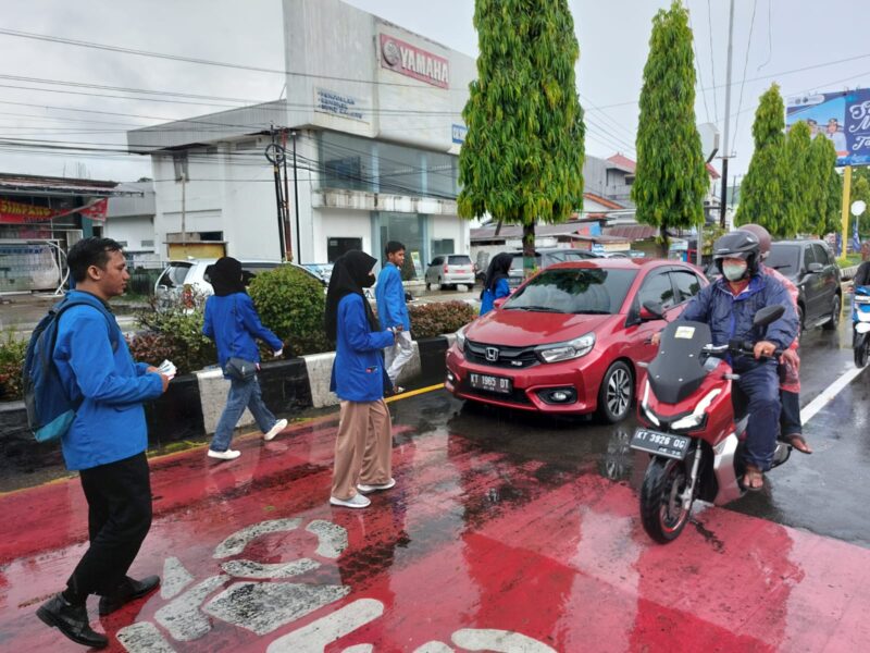 Peserta aksi membagikan stiker tersebut kepada pengendara yang melintas di sekitar jalan tersebut.
